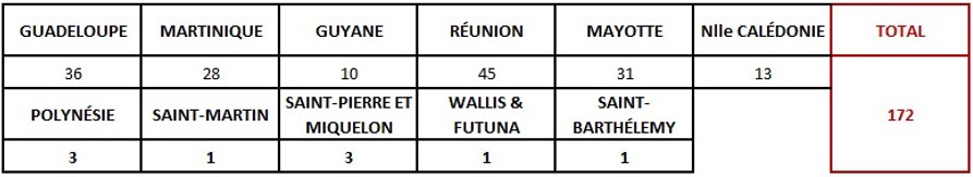 Pratiquement toutes les collectivités des Outre-mer sontreprésentées, avec une montée en puissance significative de Mayotte.